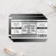 Einzigartige Einladung im Ticketstil wie Eintritt in Film oder Kino. Schwarz-Weiß-Grafik-Ecke fünfzigste Ticketstil-Einladung ist für Ihre Veranstaltung oder Ihren Anlass anpassbar. Nutzen Sie es für eine 50. Geburtstagsfeier oder jede Veranstaltung. Schwarzer Hintergrund mit weißen Trennflächen und Abschnitten, mit einem Text im Stil eines Computers.