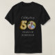 Für einen schwarz/dunkel gefärbten T - Shirt. Personalisieren und hinzufügen Ihres Fotos. Text: Feiern von 50 Jahren Ehe. Nummer 5 wird mit einem Schriftart im Ballonstil geschrieben. Imitate vergoldet Foto Rahmen.