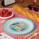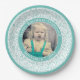 50 Ihr Foto Zufallszahlenmuster Aquamarin/weiß Pappteller
