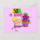 50. Geburtstagsgeschenke, Tasse, Karten, Aufkleber, Totensäcke, 50. Geburtstagsknöpfe, Magnete und andere 50. Geburtstagskleidung und Geschenke mit einer niedlichen Cartoon-Lady, die einen Stapel Geschenke und Text mit dem Aufdruck "50 ist gut!" trägt.