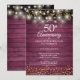 Mit hübschen Saitenlichtern und zartem goldenen Liebe Herzen Konfetti auf einem roten rustikalen Holzpaneel Hintergrund. Personalisieren Sie Ihre speziellen 50-jährigen Jubiläumsinformationen in schicken Schriften. Entwickelt von Thisisnotme©