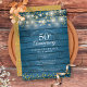 Hübsche Saitenlichter und zarte Goldene Lieben auf blauem rustikalem Holzboden. Personalisieren Sie mit Ihren speziellen 50 Jahren goldenen Hochzeitstag Informationen in schicken Schriften. Entwickelt von Thisisnotme©