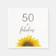 Blumenfünfzig und fabelhafte Geburtstagsnapkins, mit gelber Sonnenblume und elegantem Typografie-Design. Mit schwarz anpassbaren Buchstaben können Sie Ihr eigenes Alter hinzufügen. Ein rustikaler Landgegenstand zum Feiern dieses besonderen Geburtstags.