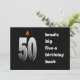 Diese coole Einladung ist ideal für eine 50. Geburtstagsparty, ein 50. Geburtstag oder alles, was 50 Jahre alt wird, mit einem Party. "50" ist groß und auf einem schwarzen Hintergrund mit einer Flamme oben. "Brad's Big Five-Oh Birthday Bash" ist vorne und alle Linien können von Ihnen geändert werden. Dasselbe gilt für die Rückseite der Einladung. Mehr große Bash Einladungen zu kommen, inklusive 40. und 30.