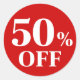50% Rabatt auf den roten Hintergrund Klassischer Rundaufkleber