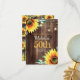 Frauenfeier 50. Geburtstag (oder jedes Alter) Danke Karte mit einem rustikalen Holzdesign mit hellgelben Sonnenblumen und glitzernden Saitenleuchten und Laternen dekoriert.