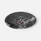 Der elegante, fünfzigster Geburtstags-Partyfeier-Papier-Teller der Frau im Rosa, Schwarzes und glänzende silberne Folie des Imitats. Liest "50 u. fabelhaft" im Rosa und im Grau. Schwarzer Hintergrund mit Schwarzem und Imitat vereitelt silberne Champagnerflasche, seinen Korken mit dem Verschütten der silbernen Folie des Imitats, der Champagnerblasen und des zerstreuten starken silbernen Blick Confetti-Glitterpunkteffektes knallend. Elegante, schwarze und silberne Geburtstagsversorgungen für 50 jährige Divas. Andere fabelhafte 50. Geburtstags-Partyversorgungen sind in unserem Zazzle/angela65* Speicher.
