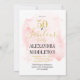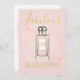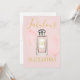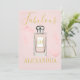 Ein rosa Aquarellspritze ist der Hintergrund für diese klassische französische Parfümflasche. Das Etikett auf der Flasche hat die Nummer 50, kann jedoch für jedes Alter geändert werden. Der Name in einer goldenen Farbe kann leicht für Ihr persönliches Design geändert werden.