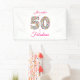 Feiern Sie Ihren 50. Geburtstag mit diesem eleganten, unterhaltsamen und personalisierten Banner. Nummer "50" Design ist Blumenmuster mit dem rosa Farbtext. Der Text kann nach Ihren Wünschen geändert werden. Das Hintergrunddesign ähnelt dem Blumenmotiv "50"