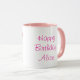 Lächeln Sie an ihrem 50. Geburtstag, indem Sie ihnen diese niedliche Tasse mit 5 glamourösen Tieren, Leoparden, Zebra, Affen, Schlafmaus und Buschbaby geben, von denen jeder rosa Ballons mit "50 und Fabulous" hält. Sie können die Tasse mit ihrem Namen personalisieren und das Alter ändern.