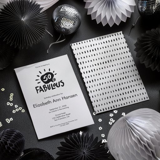 Feiern Sie 50 mit diesem stilvollen und modernen Geburtstagsdesign. 50 und fabelhaft in Schwarz-Weiß handgezeichnet Text.