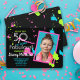 Feiern Sie Ihren 50. Geburtstag mit einem Retro 80er Jahre rosa, blau und grün Spritzer Design erstellt aus meinem handgemalten Design auf einem schwarzen Hintergrund mit einer benutzerdefinierten Fotovorlage.