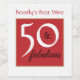 Best Wine, 50 & Fabulous Birthday Aufkleber in weiß und schwarz trendy Typografie auf einem roten Hintergrund geschrieben.