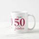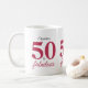 Rosa und schwarz Thema 50 und fabelhafte Kaffee-Tasse. Elegantes Typografie-Design, personalisieren mit dem Namen der Geburtstagsmädchen, dieses Stück ist perfekt für ein 50. Geburtstagsgeschenk. Ändern Sie die Textfarbe oder den verließ, wie hier gezeigt. Bitte stöbern Sie in der Pink 50 und der fabelhaften Geburtstagskollektion für weitere Produkte.