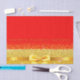 Elegantes, klassisches, glamouröses und feminines Party-Papiertaschentuch. Ein goldfarbenes Band und Bogen mit goldenem Glitzer und Funkeln, ein bisschen Bluben und Luxus für ein 50. Geburtstagsgeschenk. Rote Hintergrundfarbe Mit dem Text: 50 und fabelhaft (x3)