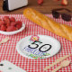 Feiern Sie ihren fabelhaften 50. Geburtstag in der Art mit dieser einzigartigen und bunten Platte! Geschaffen mit tropischen Blumenbildern der vibrierenden Blues, der Grüntöne, der Rosa und der Gelbs. Seien Sie zum Karo heraus meine gesamten 50 und fabelhafte tropische Geburtstags-Party-Sammlung an meinem Zazzle Speicher sicher: