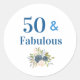 50 und Fabulous Birthday Blue Runder Aufkleber