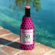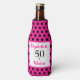 Eine elegante Art, Flaschengetränke kalt behalten, während Sie den fabelhaften 50. Geburtstag Ihres Liebsten feiern, mit diesem kühnen, eleganten 50. Geburtstagsdesign, das sich nur für dieses Geburtstagsmädchen leicht personalisieren lässt. 50 und Fabulous in rosa und schwarz Text mit klassischen Polka Punkte.
