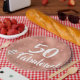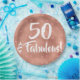 Feiern Sie die Geburtstage mit einem Flair. "50 (Alter/Jahr kann angepasst werden) und fabelhaft" in modernen Pinselstrich weißen Text auf Kupfer und Herz Hintergrund.