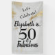 Herzlich willkommen bei den Freunden und der Familie zu den fabelhaften 50. Geburtstagsfeiern Ihres Liebsten mit diesem kühnen 50. Geburtstagsdesign, das sich einfach für dieses Geburtstagsmädchen personalisieren lässt. Vertikal 50 und Fabulous Banner in Gold und grauem Marmor mit modernem schwarzem Text.