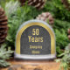 50 Years appears in faux (not foil) gold text on a black background. Under that text, you can personalize this snow globe with the company name.
