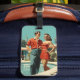 Vintages Bild der 50er Jahre mit einem charmanten Mann und einer Frau in einem kleinen roten Kleid, die sich am Pool amüsieren