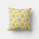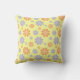 Niedliches, gelbes Kissen mit orangefarbenem und lila Blume-Design.