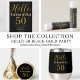 This is an elegant personalized, black and gold 50th birthday design. This modern typography design is in classic black and gold. It has the text "Hello 50" in trending typography and space for you to add your name. This stylish design is perfect for a chic and unforgettable 50th birthday party celebration, and is ideal for envelope seals, party favor seals of personalized gift tags. To personalize, simply add you name in the personalize this text box. To change the color or font, check out the design editing tool. If you need help with personalization, matching products, or for a custom design contact me via zazzle chat or email: ursuladawnmoon@gmail.com