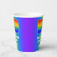 This exciting and cheerful birthday themed paper cup design features a large number “50” with a colorful rainbow spectrum inspired gradient pattern, along with the message “HAPPY 50th BIRTHDAY,”, and a customizable name. The background also features a vibrant multicolored rainbow spectrum inspired gradient pattern. Joyful birthday themed paper cups like this might be used at a party in celebration of somebody’s fiftieth birthday. [~Z0000576]