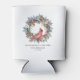 Elegant watercolor red cardinal framed by a classic winter pine wreath. Red and white flowers, berries and pinecones add to the greenery. Three lines of text let you customize your party supplies.