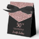 This fabulous modern 50th Birthday Rose Gold Glitter Thank You favor box with sparkling rose gold glitter, the birthday girl's name in a trendy script font, and tied with an elegant black bow would be perfect for your event. It would be great for a candy station, on a thank you gift table, or at each place setting with a favor. Be sure you order enough for all your guests.