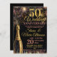 A stylish 50th Wedding Anniversary Party Invitation featuring a bottle of bubbly in gold, fireworks with gold and pink text all on a black background .A gorgeous invitation to send to family and friends to celebrate the special event. All text can be amended as needed - more text can be added on the back or delete the text box if need needed.