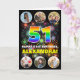 Die Vorderseite dieses lustigen und kühnen Geburtstags-Thema Grußkarte Design zeigt die Zahl "51" mit einem vielfarbigen Regenbogenspektrum inspiriert Farbverlaufsmuster, zusammen mit der Meldung "HAPPY 51st BIRTHDAY", und einen individuelle Name, auf einem Muster inspiriert durch platzen mehrfarbigen Feuerwerk. Oben und unten auf der Vorderseite sind Bilder, die individuell angepasst werden können, vielleicht mit Fotos der Familie und Freunde des Empfängers. Im Inneren befindet sich eine individuell anpassbare Geburtstags-Grußnachricht, oder vielleicht kann gelöscht und links werden, wenn eine Nachricht von Hand geschrieben werden soll. Eine spannende, personalisierte Geburtstagskarte wie diese kann zum Feiern des einundfünfzigsten Geburtstags verschickt werden. (Fotografie © Storytree Studios, Stanford, CA.) [~Z000660]