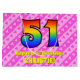 Dieses fröhliche und fröhliche 51. Geburtstagsgeschenk-Geschenktütendesign zeichnet sich durch eine große Zahl "51" aus, die durch das Aussehen eines Regenbogenspektrums inspiriert ist. Es enthält auch die Meldung "Happy 51st Birthday", und einen benutzerdefinierbaren Namen. Der Hintergrund weist ein fröhliches Muster aus hellrosa und dunkelrosa Streifen auf, die sich in liebevollen rosa Herzformen auszeichnen. Eine Geschenktasche wie diese kann verwendet werden, wenn Geschenke oder Geschenke verpackt werden, um jemandes 50. Geburtstag zu feiern. [~Z0000414]