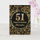 51. Geburtstag Schwarz-Gold-Flora-Muster Karte