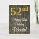 Dieses elegante, stilvolle und raffinierte Geburtstagskarten-Design verfügt über eine große Ordnungsnummer "52.", die ein goldenes Imitat/Nachahmung hat, zusätzlich zur Geburtstagsgrüßbotschaft "Happy 52. Birthday" und einem individuelle Name in einem Schriftart im Skriptstil. Es hat auch ein Imitat holz-inspiriert Hintergrundmuster auf der Vorderseite. Die Innenseite verfügt über eine benutzerdefinierte Geburtstagsgrüßbotschaft oder könnte gelöscht und leer verlassen werden, wenn eine Nachricht von Hand geschrieben werden soll. Eine luxuriöse, anpassbare Geburtstagskarte wie diese könnte eine lustige Art sein, jemandem, der seinen zweiundfünfzigsten Geburtstag feiert, eine Geburtstagsgrüßbotschaft zu überbringen. [~Z0000519]