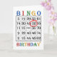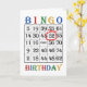 52. Geburtstagkarte. Sage einen Glückwunsch zum Geburtstag zu einem Bingo-Spieler mit einer Bingokarte. Das Alter ist rot eingekreist. Ein Bingo-verrückter Spieler bekommt einen Riesenkick aus dieser Karte! Copyright Norma Cornes.