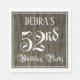 Dieses luxuriöse und extravagante Geburtstagsthema besticht durch einen editierbaren Namen und die Meldung "52. Geburtstagsparty". Die große Zahl "52." und die Wörter "Geburtstagsparty" sind in verziertem Skriptstil gehalten, und der Hintergrund hat eine Imitation/Imitate holznarbig inspiriert Muster. Verzierte, aufwändige Papierservietten wie diese können bei einer Geburtstagsparty/Feier zum 52. Geburtstag von jemandem verwendet werden. [~Z0000564]