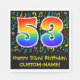 Dieses lustige, farbenfrohe und lebendige Geburtstagspapier-Serviette-Design zeichnet sich durch eine große Zahl "53" mit einem inspirierten Regenbogenspektrum aus. Es enthält auch die Meldung "Happy 53. Geburtstag", und einen bearbeitbaren Namen. Ein Teil des Hintergrundes weist verschiedene Musiknoten und Symbole mit verschiedenen Farben und Größen auf. Vergnügliche, bearbeitbare Papierservietten wie diese können bei einer Feier verwendet werden, um einem Musiker, einem Sänger, einem Komponisten oder einem anderen zum dreiundfünfzigsten Geburtstag zu ehren. [~Z0000421]