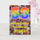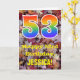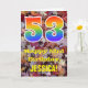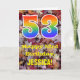 Die Vorderseite dieser bunten, rustikalen und naturlich inspirierten Geburtstagskarte zeigt eine große Zahl "53" mit einem inspirierten Regenbogengefälle, zusammen mit der Meldung "Happy 53. Geburtstag" und einem personalisierten Namen. Der Hintergrund der Vorderseite der Karte weist ein rustikales, gefallenes Herbstblatt-Muster auf. Im Inneren befindet sich eine personalisierte Geburtstagsgrüßbotschaft, oder man könnte sie löschen und leer verlassen werden, wenn eine Nachricht von Hand geschrieben werden soll. Eine personalisierte Geburtstagskarte wie diese könnte eine lustige Art sein, eine Botschaft zum Feiern des dreiundfünfzigsten Geburtstages von jemandem zu senden. [~Z0000384]