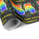 Dieses lustige, farbenfrohe und lebendige Geburtstagsdesign zeigt eine große Zahl "54" mit einem inspirierten Regenbogenspektrum-Muster, zusammen mit der Meldung "Happy 54 th Birthday" und einem anpassbaren Namen. Ein Teil des Hintergrundes weist verschiedene Musiknoten und Symbole mit verschiedenen Farben und Größen auf. Geburtstags-Thema Packpapier wie dieses könnte eine lustige Art sein, ein Geschenk oder Geschenk zu verpacken, das einem Musiker, einem Sänger, einem Komponisten oder jemand anderem gegeben wird, der seinen 54. Geburtstag feiert. [~Z0000422]