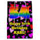 Dieses bunte und fröhliche Geburtstagsgedankendesign zeigt eine große Zahl "54" mit einem inspirierten Regenbogenspektrum-Muster, zusammen mit der Meldung "Happy 54 th Birthday" und einem personalisierten Namen. Der Hintergrund ist mit roten, rosa und lila Herzformen unterschiedlicher Größe gestaltet. Ein Geburtstagsgeschenke wie dieser kann bei Geschenken oder Geschenken zum 54. Geburtstag eines Menschen verwendet werden. [~Z0000551]