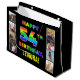 Dieses aufregende Geschenktütendesign mit dem Motto "HAPPY 54 TH BIRTHDAY", mit einem farbigen Regenbogenspektrum, inspiriert Farbverlaufsmuster und einem benutzerdefinierten Empfängernamen. Die Fotos an den links und rechts von der Regenbogen-gemusterten Nachricht an der Kartenvorderseite können personalisiert sein, vielleicht mit Fotos des Empfängers, der Familie und Freunden des Empfängers und/oder dem/den Absender(en) des Geschenks. Eine aufschlussreiche Geburtstagsgeschenktüte wie diese könnte eine lustige Art sein, ein Geschenk zu verpacken, das jemandem geschenkt wird, der seinen vierundfünfzigsten Geburtstag feiert. (Fotografie © Storytree Studios, Stanford, CA.) [~Z000668]