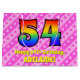 Dieses fröhliche und festliche 54. Geburtstagsgeschenkdesign zeigt eine große Zahl "54" mit einem inspirierten Farbverlauf. Es enthält auch die Meldung "Happy 54 th Birthday", gefolgt von einem bearbeitbaren Namen. Der Hintergrund weist ein fröhliches Muster aus dunkelrosa und hellrosa Streifen auf, die sich in liebevollen rosa Herzformen auszeichnen. Eine Geschenktasche wie diese kann verwendet werden, wenn Geschenke oder Geschenke verpackt werden, um jemandes vierundfünfzigsten Geburtstag zu feiern. [~Z0000414]