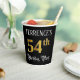 Dieses extravagante und elegante Geburtstagszeitpapier-Cup-Design zeichnet sich durch einen individuell anpassbaren Namen und die Meldung "54. Geburtstagsparty" aus. Die große Zahl "54." hat ein in Gold inspiriert Farbmuster, die Wörter "Geburtstagsparty" sind im verzierten Skriptstil enthalten, und der Hintergrund ist standardmäßig schwarz (obwohl er angepasst werden kann). Opulente, verzierte Papiertassen wie diese könnten nützlich sein, um bei einer Geburtstagsparty/Feier zu Ehren von jemandem zum 54. Geburtstag gefeiert zu werden. [~Z0000567]