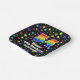 This cheerful and fun birthday themed paper plate design features a large number “54” having a rainbow spectrum gradient inspired pattern. It also features the message “Happy 54th Birthday,”, and a customizable name. The background features a multicolored pattern featuring many star shapes with different colors and sizes. Paper plates like this might be used when celebrating somebody’s 54th birthday. [~Z0000582]