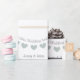 Das Umhüllungspapier zeigt ein hübsches grünes Bunddesign und hat Platz für die Namen des Ehemanns und der Ehefrau, sowie ihr Hochzeitstermin. Eine spezielle, individuelle Nachricht kann auch auf dem Bundting enthalten sein.