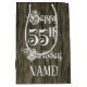 Dieses luxuriöse und aufwändige Geburtstagsgeschenke-Design enthält die Meldung "Happy 55 th Birthday", in extravagantem Skriptstil, auf einem Imitat aus Holz inspiriert Muster Hintergrund. Es enthält auch einen personalisierten Empfängernamen. Eine elegante Geschenktasche wie diese kann verwendet werden, wenn Geschenke verpackt werden, die jemandem zur Feier ihres fünfundfünfzigsten Geburtstages gegeben werden. [~Z0000558]