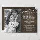 55. Hochzeitstag Einladung mit Foto. Elegantes rustikales Design mit dunkelbraunem Holzmuster. Enthält Skript-Schriftart und Feenzeichenleuchten. Bis 55 Jahre! Kann in jedes Jahr personalisiert werden. Nachricht, wenn Sie weitere Anpassungen benötigen.
