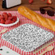 This cool numeric design is a black and white random number pattern with a black milestone number 55 repeated in varied sizes and angles over a white background.